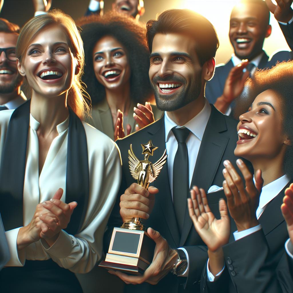 "Diverse Business Owners Celebrating Awards"