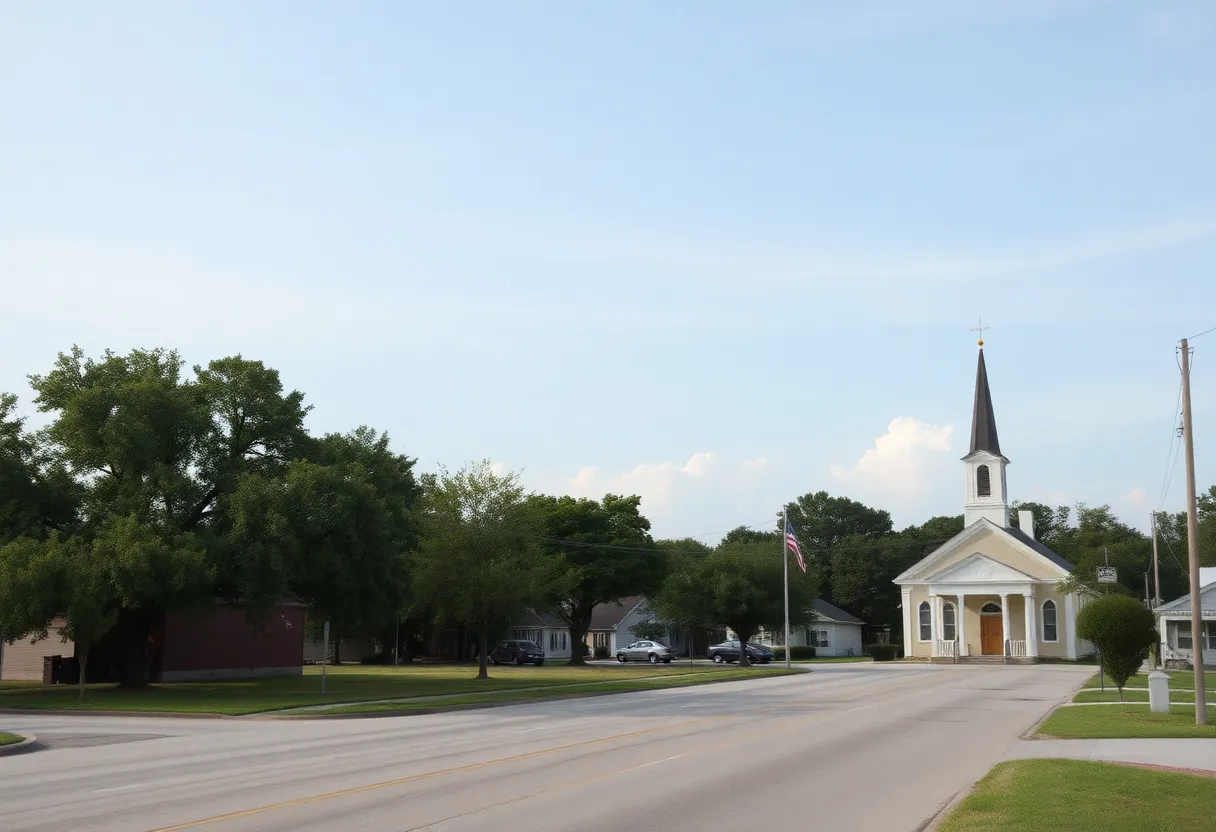 A peaceful landscape of Mansfield, Louisiana, during a sunset, representing community remembrance.