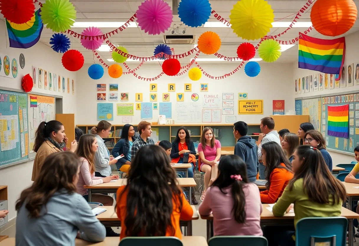 A diverse group of students and educators in a school environment promoting inclusivity and acceptance.