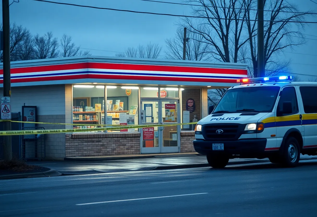 Convenience store scene with police presence