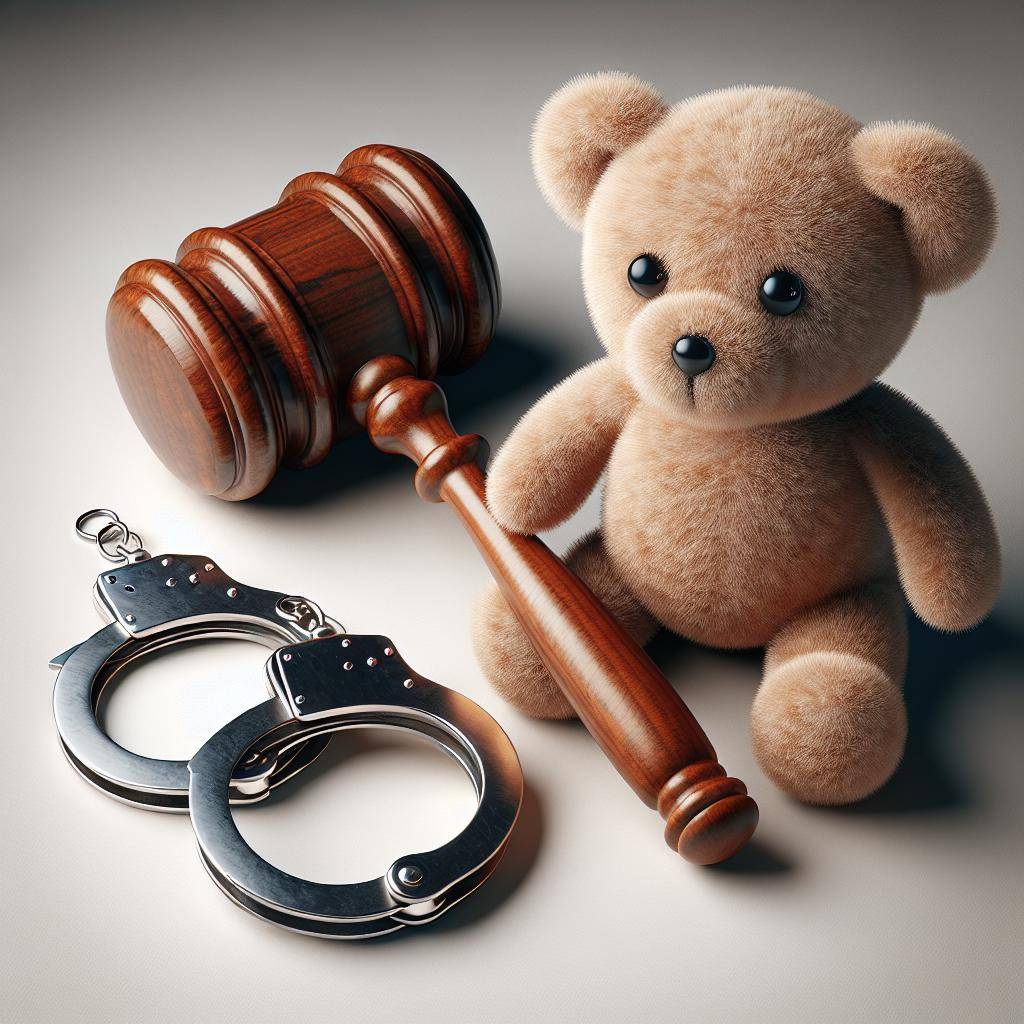 Gavel, handcuffs, teddy bear