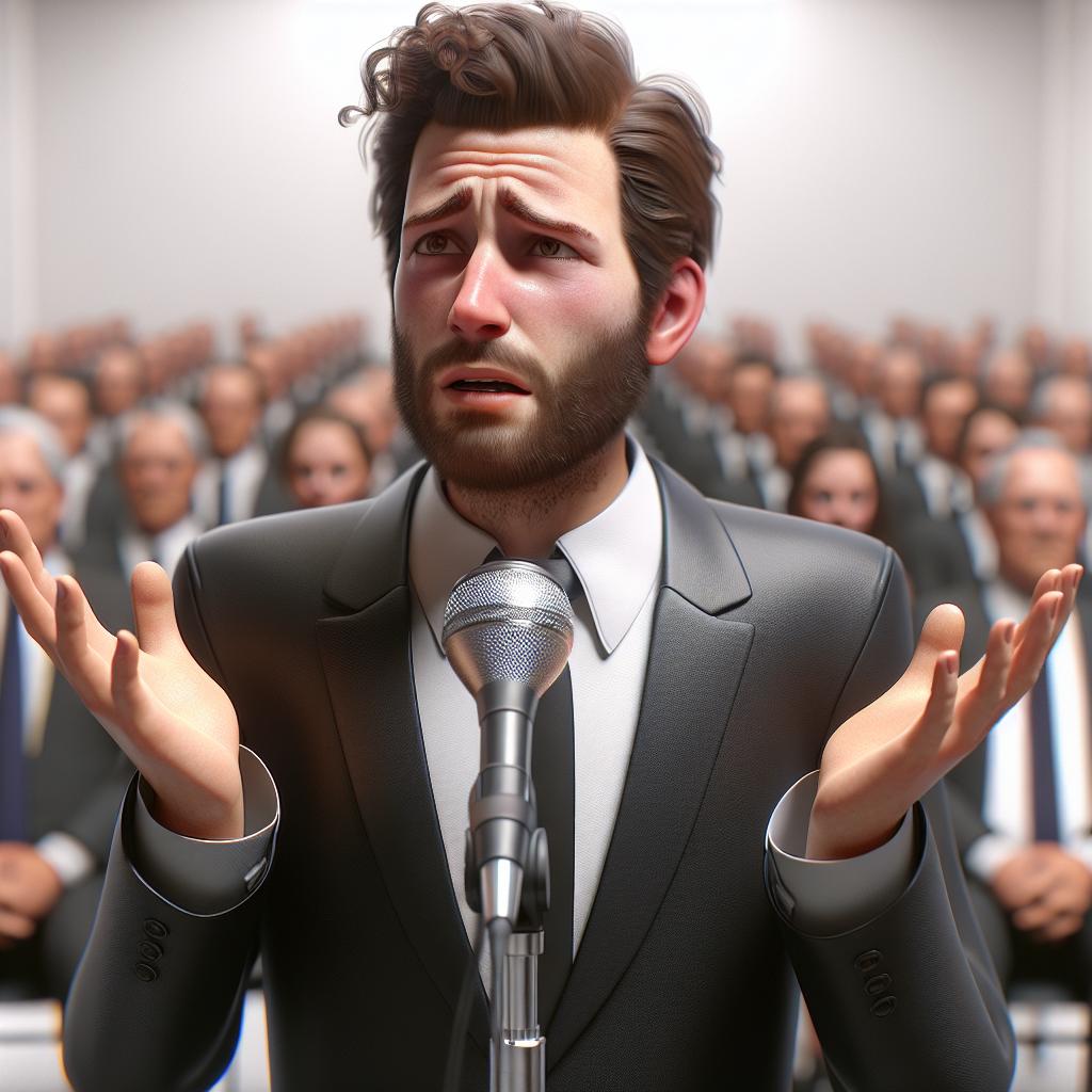 Confused politician with microphone.