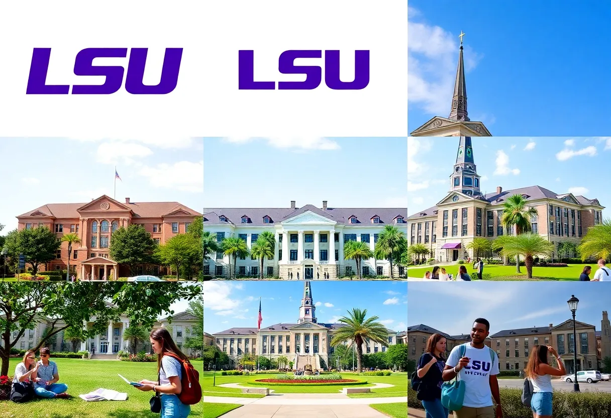 A visual representation of the University of New Orleans campus with LSU imagery.